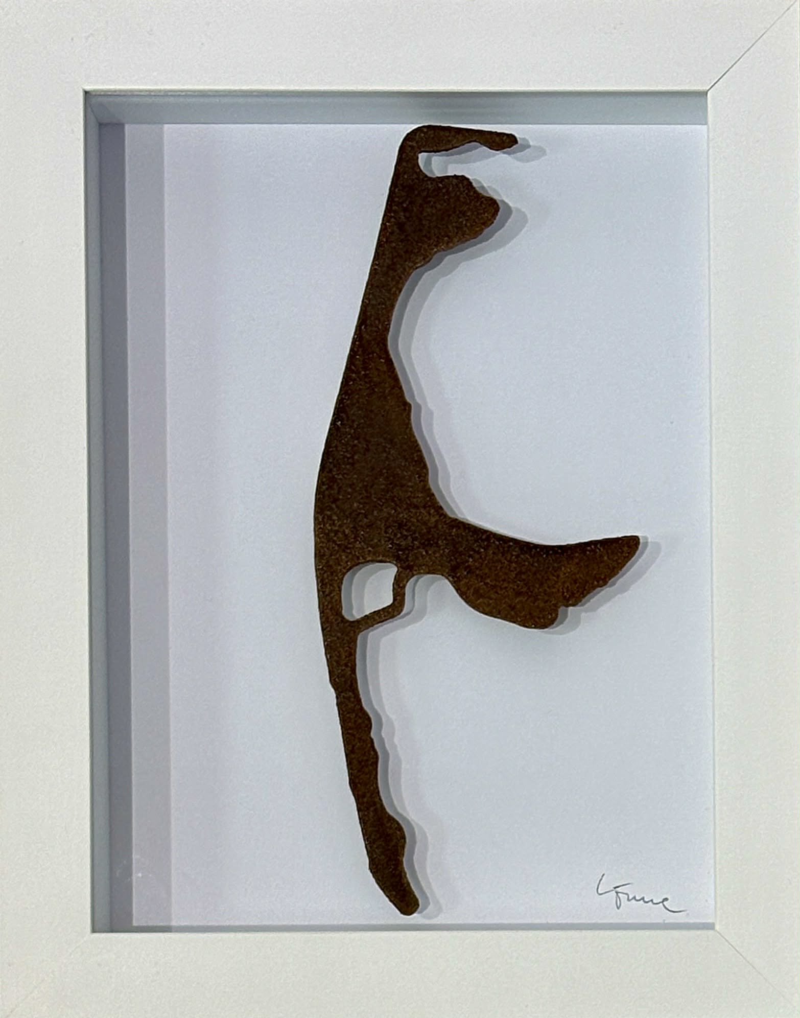 Stahlskulptur gerostet in Objektrahmen