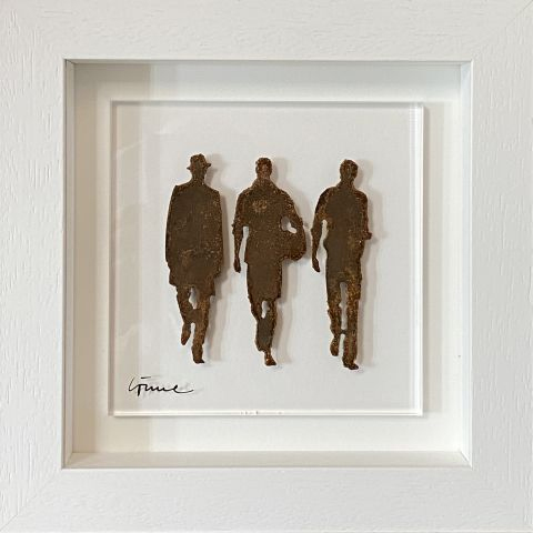 Stahlskulptur gerostet in Objektrahmen